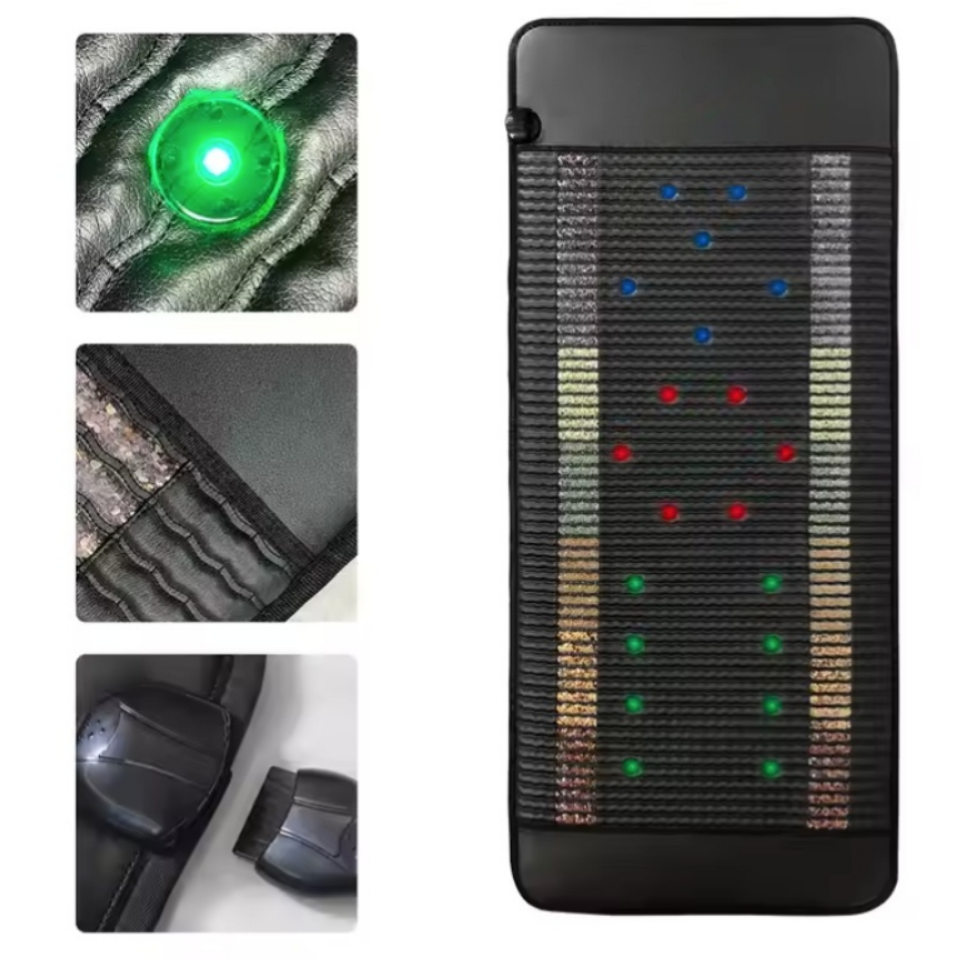 Features: PEMF coils, chromotherapy LEDs, adjustable intensity, auto shut-off timer